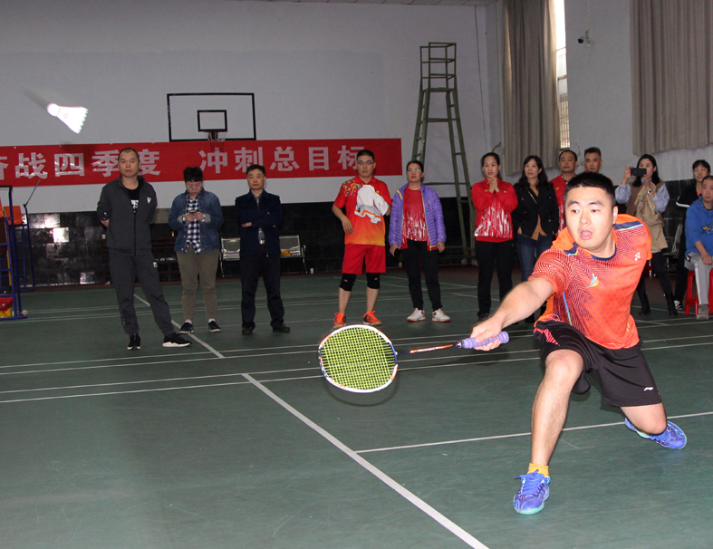 秦彦平宣布生材集团首届羽毛球比赛正式开始。随后,选手们各就各位,迅速进入比赛状态。